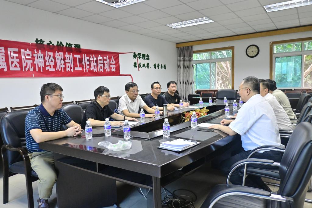 9月26日下午,攀枝花学院暨附属医院神经解剖工作站挂牌启动仪式在我校医学院会议室举行。党委副书记、副校长刘立新,基础医学院院长赵牧、副院长徐万宇,附属医院院长陈建勋出席挂牌启动仪式。基础医学院人体解剖与组织胚胎学教研室主任史恺、脑科学中心主任张弋,附属医院神经外科主任鄢克坤、曹友林等出席挂牌揭幕式。挂牌仪式由附属医院神经外科主任鄢克坤主持。