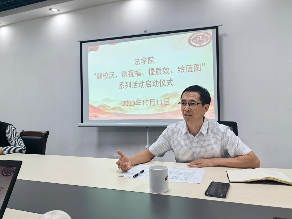 在校庆倒计时一个月之际,10月11日下午,法学院在凌云楼三楼会议室举行了迎四十周年校庆系列活动启动仪式,全面落实与加紧推校庆各项工作。副院长(主持工作)杨开华主持会议,并就做好校庆四十周年倒计时一个月相关工作提出要求。