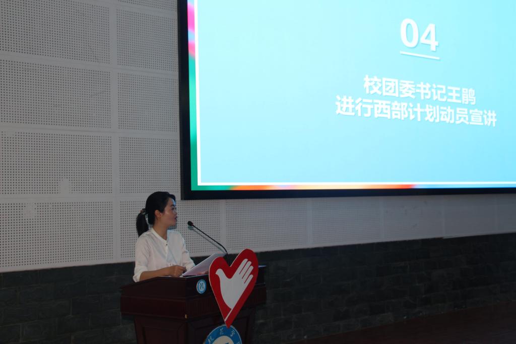 闫佳琳对西部计划政策进行宣讲,围绕招募条件报名方式、选拔标准、政策支持、资金保障等方面对项目情况和政策进行了介绍和解读。