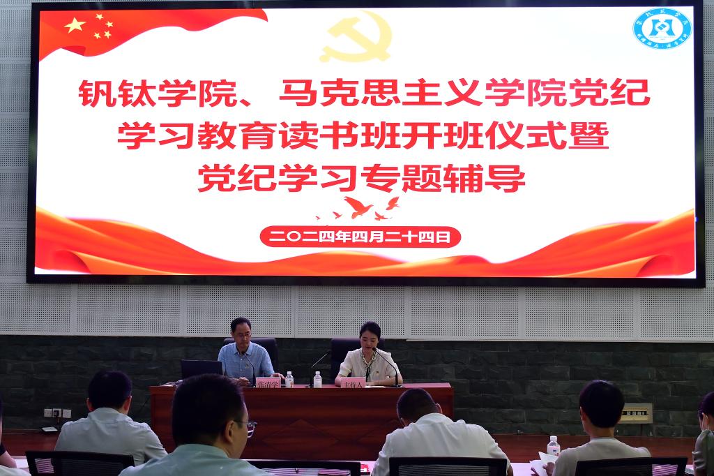 4月24日,钒钛学院、马克思主义学院在学术报告厅联合开展党纪学习教育专题党课。马克思主义学院党委书记张清学教授围绕学习《中国共产党纪律处分条例》作专题辅导。学院党政领导班子、师生党员100余人参加学习。