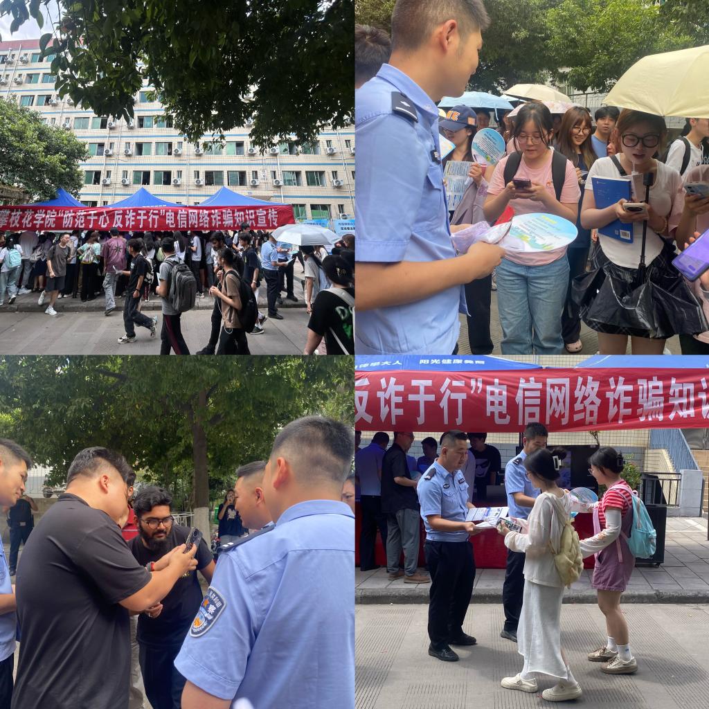 为进一步增强师生防范电信网络诈骗意识,提升辨别网络诈骗手段的能力,从源头上遏制电信诈骗事件的发生,4月25日,学工部与保卫处、东华派出所、校园网服务中心、中国邮政储蓄银行攀枝花分行在学生社区开展“防范于心 反诈于行”电信网络诈骗知识宣传活动。
