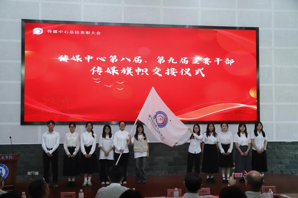 会议最后,传媒中心第八届、第九届主要干部进行了传媒旗帜交接仪式