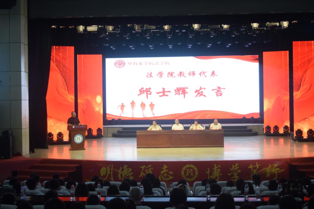 彭徐带领新生们重温了攀枝花三线建设时期波澜壮阔的峥嵘岁月和学校筚路蓝缕、砥砺奋进的光辉历程,他指出,“得天下菁英而育之”是攀大薪火相传、砥砺前行的不竭源泉;“育天下英才而成之”是攀大弦歌不缀、勇争一流的永恒动力。同学们来到攀大法学院,应对自我进行理性、科学的定位,树立高远的目标,努力把对大学的美好想象变为美好现实。