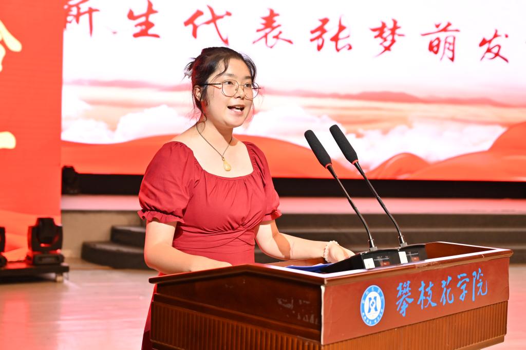 新生代表张梦萌表示,大学是人生旅途的重要阶段,我们要不忘初心,牢记使命,砥砺品格,志存高远,知行并重,勇于实践,创造自己的辉煌明天。