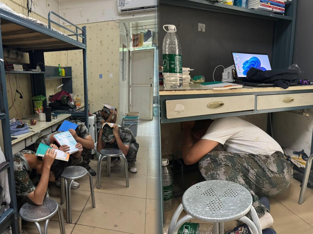 为牢固树立新生的防震减灾安全意识,提高应对地震等灾害应急处置能力,9月12日下午,我校组织全体新生在南苑、西苑同时开展公寓区的地震应急综合演练。副校长朱云生全程参与并进行指导,学工部、资产经营公司、各二级学院相关负责人、2024级全体新生参加演练。