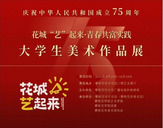 9月29日,为庆祝新中国成立75周年,“大学生美术作品展”在攀枝花市文化馆顺利展出。展览由攀枝花市文化广播电视和旅游局主办,攀枝花市文化馆、攀枝花学院和攀枝花市美术家协会承办。
