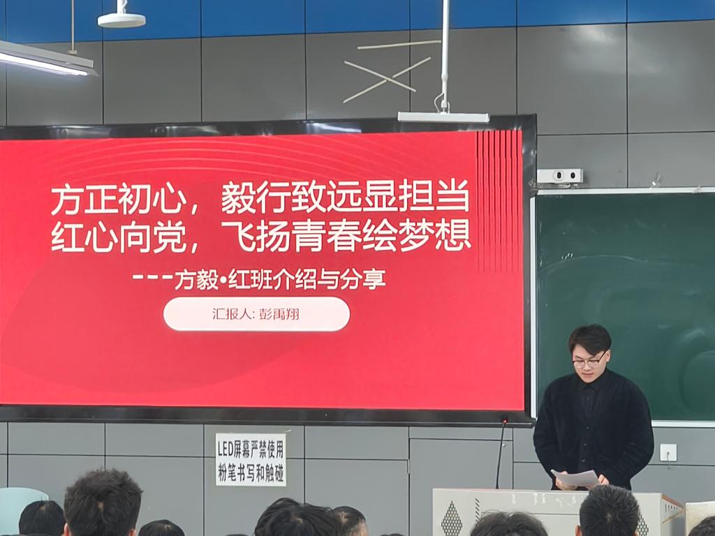 方毅·红班优秀学员彭禹翔,重点介绍了红班的选拔方式、培养模式和学习氛围。他分享了担任班长期间个人收获,尤其是在人际交往、团队协作、领导力和公共演讲等能力方面的提升。他通过在红班跨学科学习,获得前沿理论知识,理解国家和社会的发展,培植了青年远大理想和勇于挺膺担当的责任感。