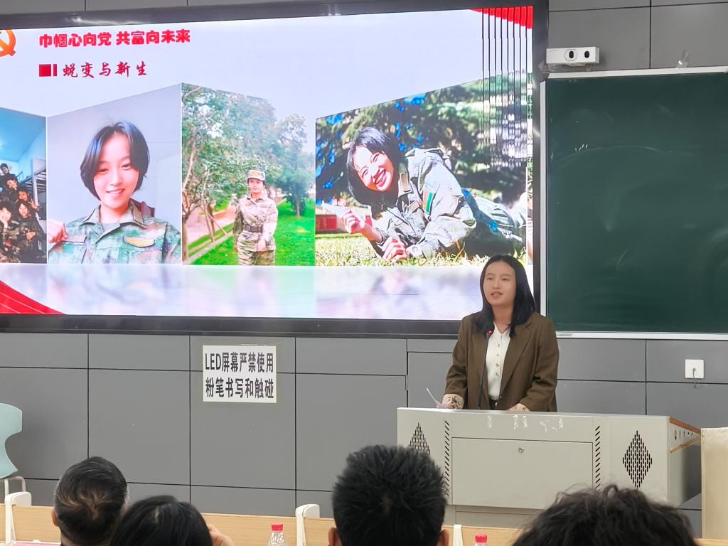 优秀退伍大学生余沛芝,以“戎光焕发,乡心而行”为题,结合自身入伍经历讲述她蜕变成长的过程,在服役期间始终牢记为人民服务的宗旨,用事实切入体现了平凡而温暖的军营生活。她退伍后依然以人民的需求为导向,实地调研走访多个攀枝花的村庄,更深层次的理解共同富裕的理念,临近毕业之际选择扎根基层、服务基层,参与迤沙拉村民居改造和文旅项目调研,她鼓励大学生们要以“功成不必在我,功成必定有我”的理念,积极听党号召、跟党奋斗,推动攀枝花在共同富裕的道路上稳步前行。