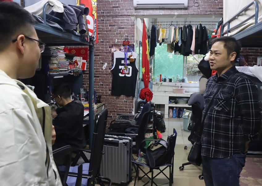 在文明校园建设方面,学院党委副书记张健带领辅导员深入学生寝室,开展“寝室文明巡查”活动,检查寝室卫生和设施设备,确保学生生活环境安全、整洁。同时关心学生的生活状况和心理状态,鼓励他们积极面对新学期挑战,保持良好生活态度,共同营造文明校园氛围。
