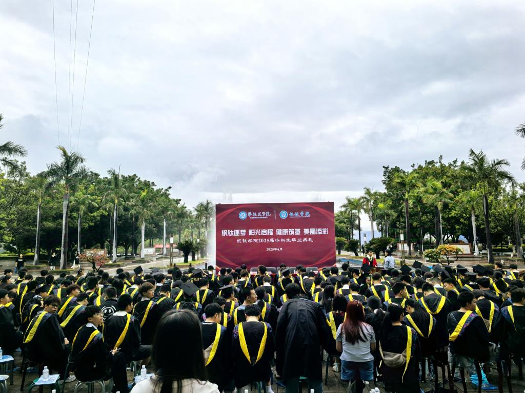 621日上午,钒钛学院在公园校区C区工程实训中心喷泉广场举办2025届本科生毕业典礼暨学位授予典礼。教务处、科研处和资产经营公司领导与钒钛学院领导班子、学院教职工、2025届全体本科毕业生以及毕业生家长代表参加典礼,典礼由钒钛学院党委副书记、纪委书记蒲洪主持。
