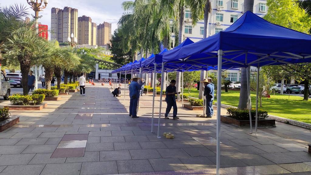 针对迎新工作站点的保障需求,资产公司展现出高度的执行力和协作精神。根据各站点现场需要,团队及时完成了帐篷的快速拆装搭建,并专业安装了临时用电线路和照明灯具,确保了各迎新站点全天候高效运转,为新生提供便捷服务。