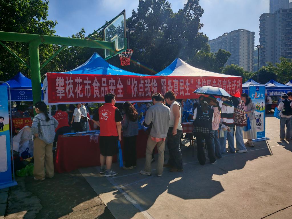 活动现场,攀枝花市、东区市场监管局工作人员通过设立咨询台、发放科普资料等形式,向师生普及食品安全知识。同学们积极响应,踊跃扫码参与问卷填写,主动咨询食品安全相关问题,现场互动氛围热烈。
