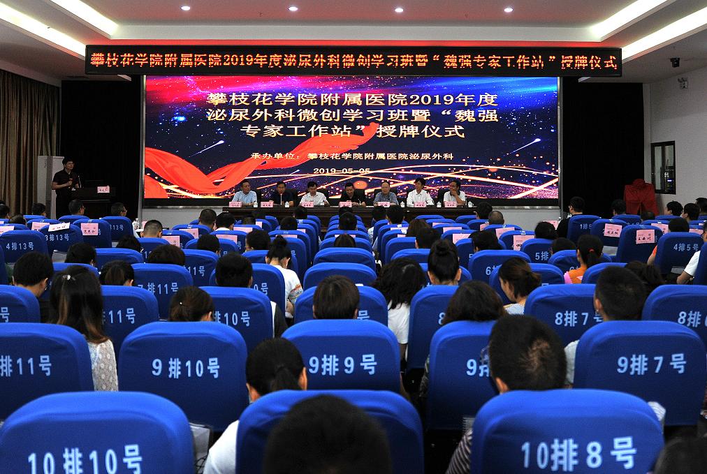 田巨龙和魏强共同为“魏强专家工作站”揭牌,揭牌仪式后,2019泌尿外科微创学习班正式开始。来自华西医院及攀枝花各大医院的泌尿外科领域的专家、教授进行了各自的专题汇报。