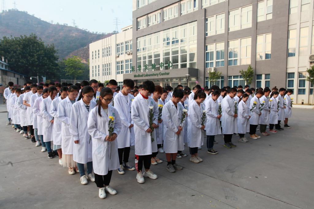 活动仪式上,全体师生手执素菊,重温医学生誓言,向为医学教育事业做出无私奉献的遗体捐献者——医学界尊称的“大体老师”,致以最崇高的敬意和深切的缅怀,在场师生集体默哀一分钟,向大体老师致以最崇高的敬意。