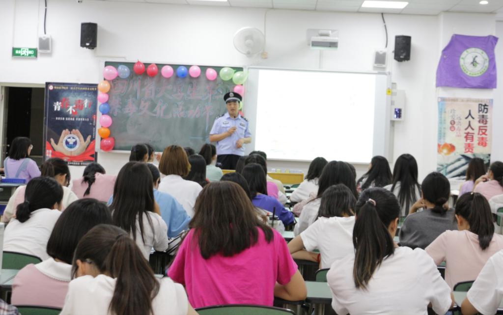 3月28日,为加深同学们对于毒品的了解,培养大家同毒品违法犯罪行为做斗争的自觉性,禁毒知识讲座在我校东苑十五教学楼顺利展开。攀枝花市东区公安分局银江派出所的工作人员通过现场展示与讲解为在场同学们介绍了毒品的基本特征、毒品与医疗用药的不同概念以及如何对待身边的吸毒者。在场同学纷纷表示,在今后的学习与生活中定会严于律己,以实际行动抵制毒品并将禁毒知识传播给身边的每一个人。