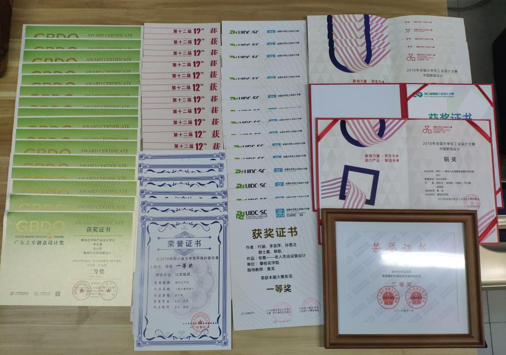 在学科竞赛方面,产品设计专业学生在2018年分别参与全国大学生工业设计大赛、生态环境部生态红线标识设计大赛、四川省环保创意设计大赛、中国包装创意设计大赛、内蒙古文化旅游创意产品设计大赛、广东之星设计艺术大赛等赛事。总计获得国家级奖项35项、省级奖项90项。