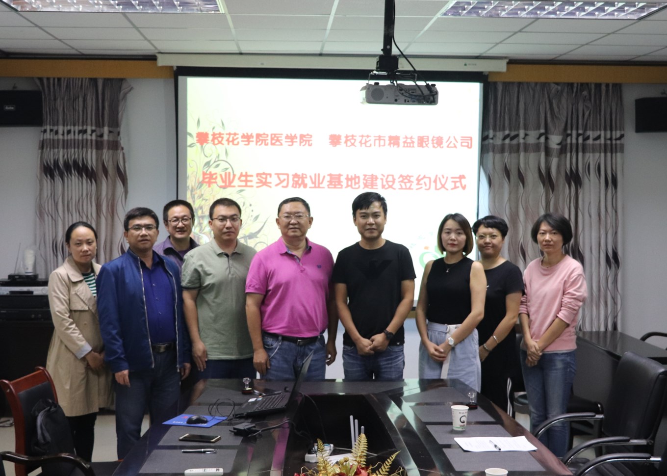 10月18日下午,医学院与攀枝花市精益眼镜公司在医学院会议室举行毕业生实习就业基地建设签约仪式。医学院党政负责人、精益眼镜公司负责人及部分医学院教师参加了本次签约仪式。