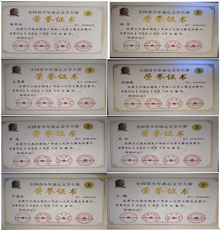 全国青少年冰心文学大赛是以文学大师冰心名字命名的全国性权威的、高品质的、大规模的文学赛事之一。本届大赛以“文学与成长”为主题,参赛人员涵盖了全国32个省、直辖市、自治区共计6000余人。我校参赛队伍由人文社科学院袁学敏教授、蒋秀碧教授指导,由6名来自人文社科学院和2名来自医学院的学子组成。