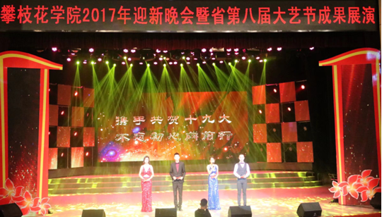 晚会分为“轻启华章,以梦为马” “青春激昂,流光溢彩” “不忘初心,砥砺前行”3个篇章,共11个节目。民族舞蹈、舞台剧、管弦重奏、街舞、拉丁舞、朗诵、合唱等多种形式的节目在晚会上纷纷亮相。其中,由来自米易仙山村的我校精准帮扶对象安小燕小朋友参与的歌曲《不忘初心》,赢得满堂喝彩;我校师生同台表演的诗歌朗诵《无悔的青春》,以三代人的传述为我们展现了攀枝花学院建校三十四年的艰辛历程,深深地打动了现场的观众。