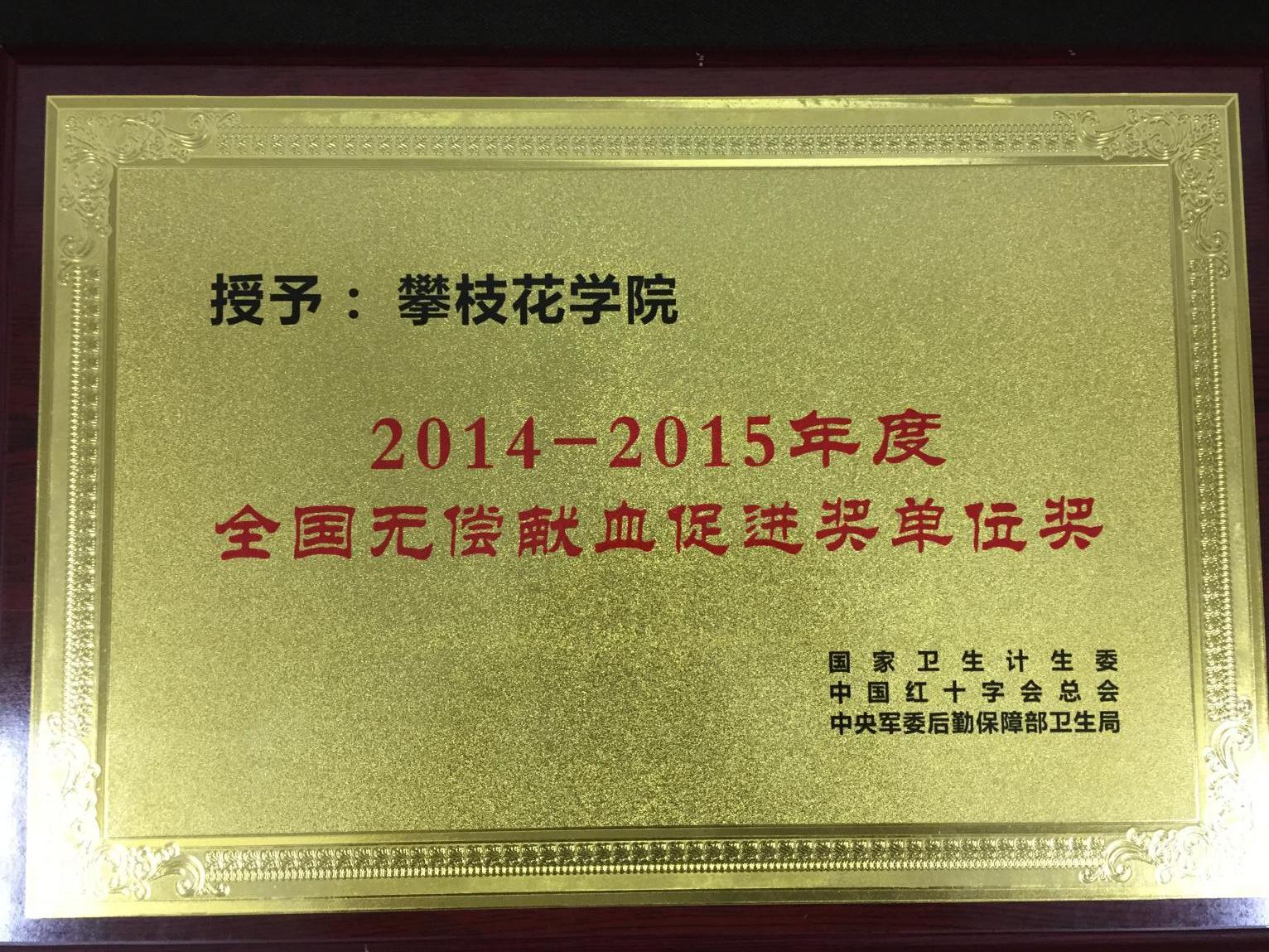613日,在第14个“世界献血者日”攀枝花市献血表彰活动中,我校荣获“20142015年度全国无偿献血促进奖单位奖”。
