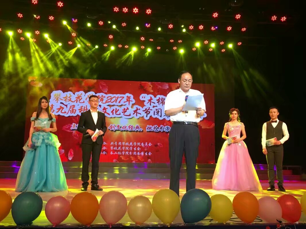 25日晚,我校2017年“木棉花开”第九届科技文化艺术节闭幕式晚会在会堂举行,校党委副书记兼纪委书记李尚志,学生处、创业学院、各二级学院分管学生工作领导和分团委书记、学校师生代表约1000人观看了晚会。