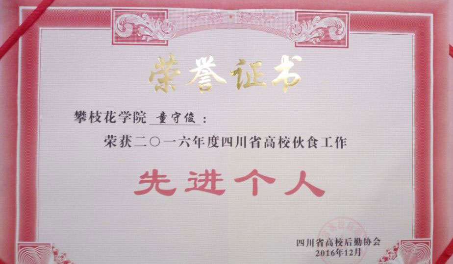 近日获悉,我校后勤集团食堂服务中心被四川省高校后勤协会评为2016年度四川省高校伙食工作“先进集体”。食堂服务中心经理童守俊被评为四川省高校后勤协会2016年度四川省高校伙食工作“先进个人”。